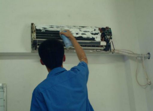 | 安庆市空调维修师傅给安庆市用户上门维修清洗空调。 |